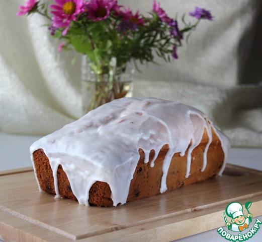 Готовый кекс посыпать сахарной пудрой. На мой вкус кексы нравится покрывать глазурью.