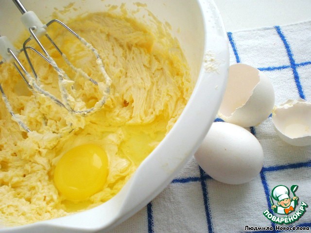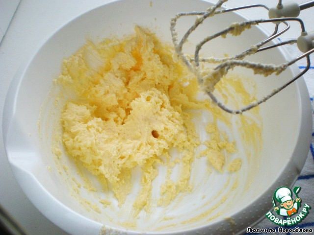 Мягкий маргарин или сливочное масло комнатной температуры взбить с сахаром в пышную массу