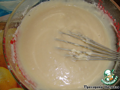 Добавить просеянную муку и соду. Тщательно перемешать. Тесто должно получиться, как густая сметана. При желании, можно добавить какао.