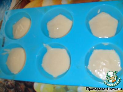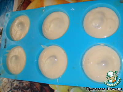 Далее, наливаем в каждый отсек еще по 1,5 ст. ложки теста. Формы должны быть заполнены не более чем на 3/4. У меня получилось как раз на 12 кексов.