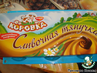 Далее, выкладываем по 1 шоколадной конфете. Можно использовать кусочки шоколадки, но тогда по паре кусочков, кладя их друг на друга.