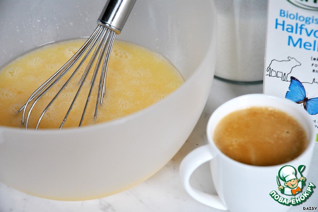 Все жидкие ингредиенты и сахар взбиваем, пока сахар не растает.