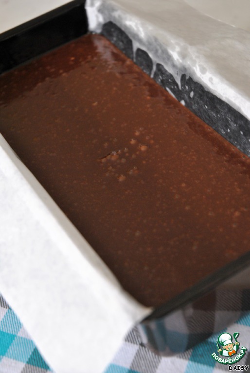 Выливаем тесто в смазанную маслом форму (можно выстелить пекарской бумагой) и ставим в горячую духовку (180*С) на 40-50 минут. Проверьте готовность кекса зубочисткой – она будет не совсем сухой, но относительно чистой. Кекс должен быть мокрым, не перепекайте.
