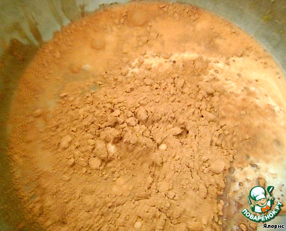Готовим глазурь: 3 ст.л молока + 3 ст.л сахара + 2 ст.л. какао смешиваем, варим до загустения.