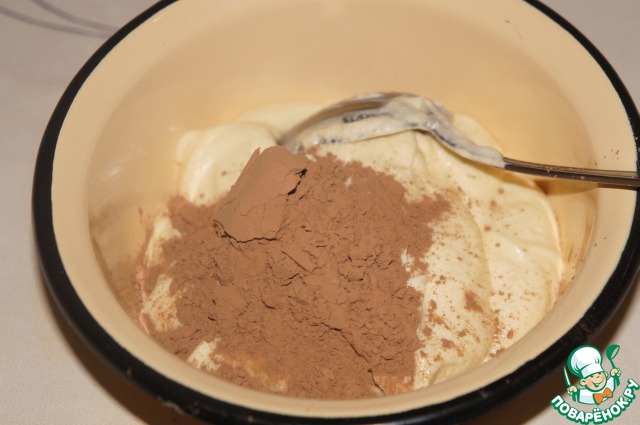 Отложить в отдельную миску 3-4 ст. л. теста, добавить к нему какао и тщательно перемешать.