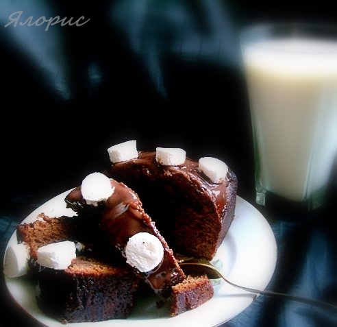 В этот раз кексик я покрыла шоколадным кремом-пудингом а-ля Данетто.