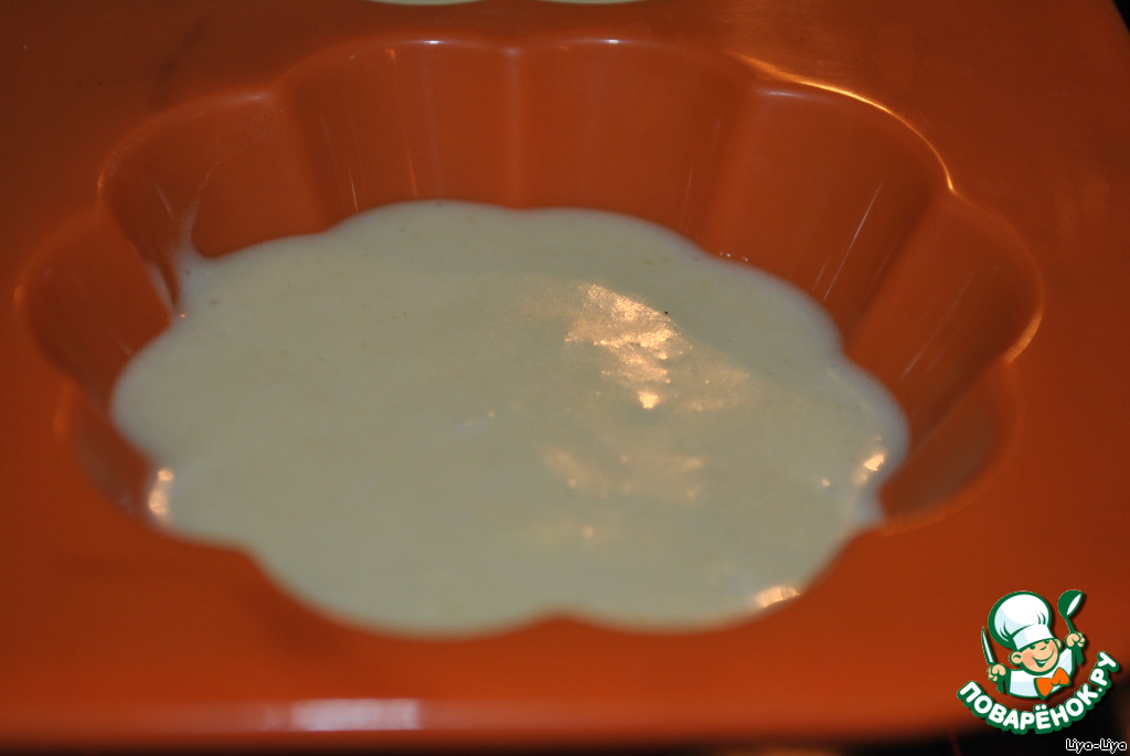 Разливаем по силиконовым формам (если форма не силиконовая, ее нужно смазать маслом), наши маффины увеличатся, поэтому не доливаем до края формы. Отправляем в разогретую духовку.