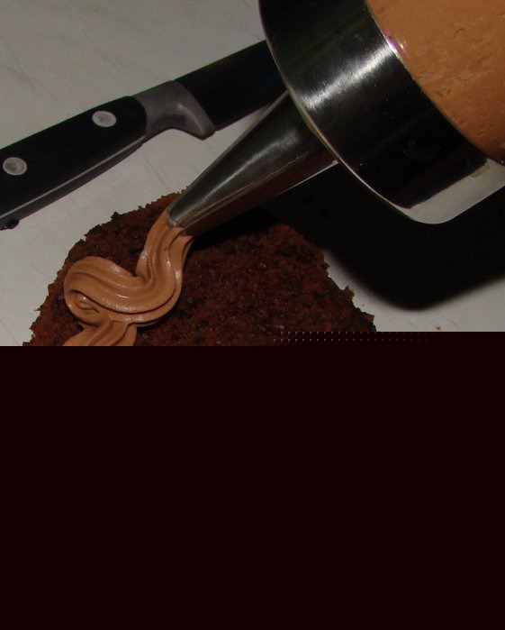 Пока кексы остывают взбиваем уже остывшие сливки с шоколадом.Взбиваем до плотной массы.