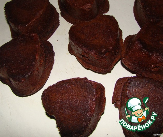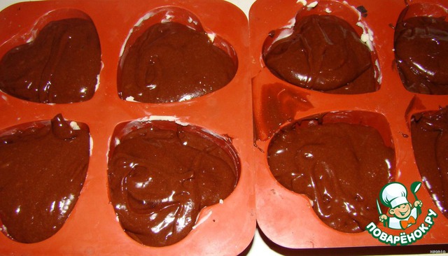 Смешиваем с шоколадной массой.Заполняем формочки смазанные маслом , тестом и отправляем в разогретую духовку выпекаем при температуре 180.20-25минут