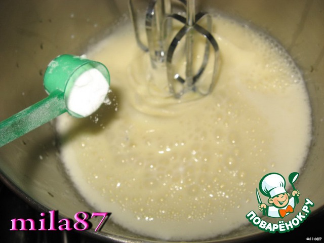 Всыпаем муки, ровно столько, чтобы тесто стало как густая сметана.