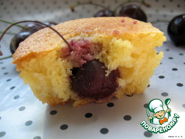 | Такие кексы будут замечательны на вкус с любой ягодой, а черешенки с хвостиками выглядят озорно и весело)) |