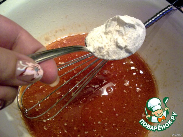 Добавить чайную ложку (без горки) соды. Взбить венчиком (происходит эффект гашения соды, т.к. в томате есть кислота)