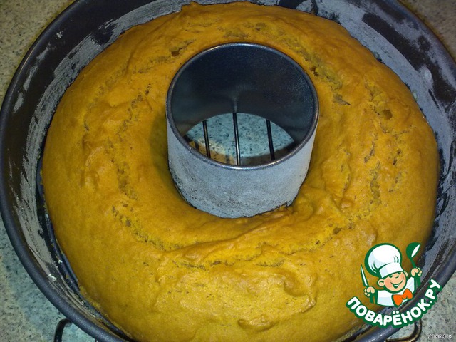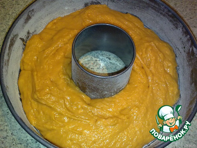 В смазанную маслом и посыпанную мукой форму для кексов выложить тесто (у меня диаметр формы 24 см)