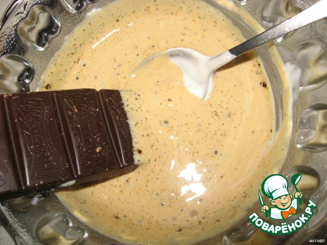 Все ингридиенты для глазури нагреваем на водяной бане до полного растворения шоколада и сахара, я разогревала в микро, вынимая периодически и перемешивая.