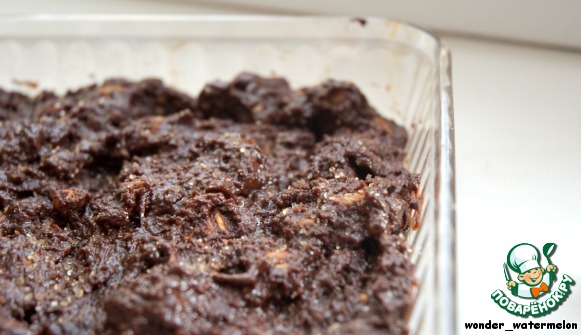 Добавить шоколадную массу, перемешать и выложить в форму.