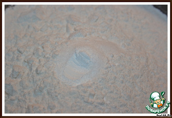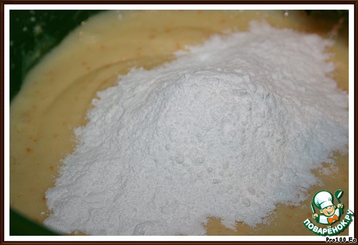 1. Соединить муку, разрыхлитель и 1/2 ч.л. соли. Хорошо перемешать.
