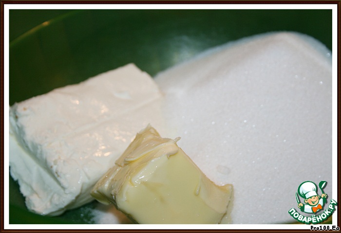 2. Соединить сахар, сливочное масло и сливочный сыр.