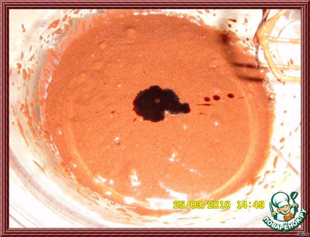 В чашке смешайте воду (в моем случае вода и крем-ликер "Моцарт"), растительное масло, уксус и ванильную эссенцию