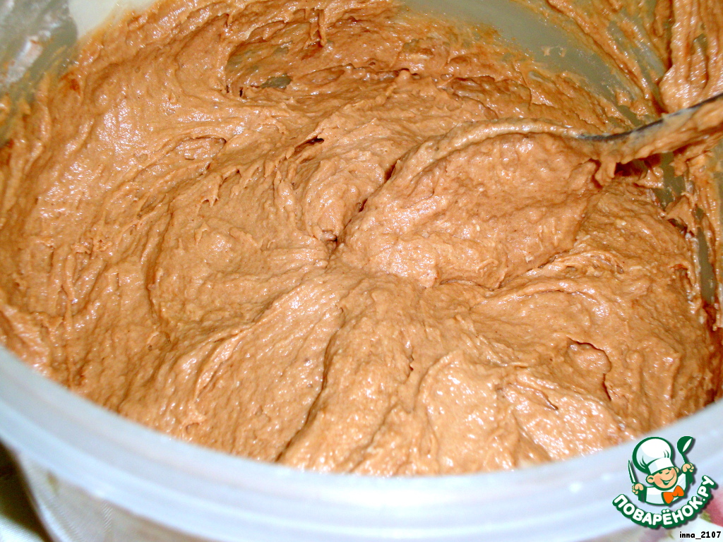 Добавить муку с разрыхлителем, ванильным сахаром и какао.