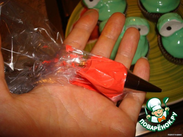 красной глазурью рисуем "рот"..а то как же они будут квакать))