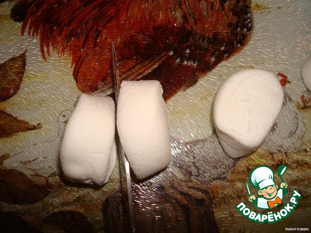 Из белого маршмеллоу делаем "глаза"