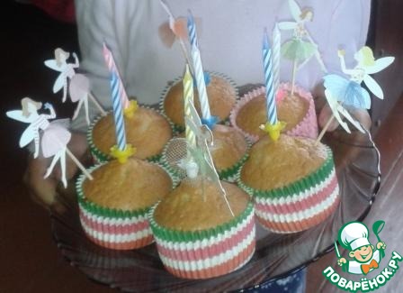 Пекла маме на день рождения. Кексы хорошо переносят транспортировку по электричкам. Тесто мягкое, но не такое, чтобы можно было легко подавить. Украшено специальными украшательствами для кексов. Подарены внучкой бабушке. После чего слопаны внуком с дедушкой, пока девчонки играли феечками.