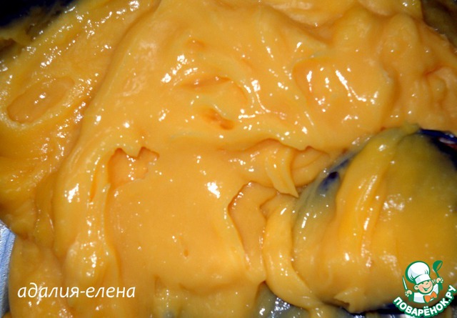 Поставить в разогретую до 180гр. духовку и выпекать 15 минут. Затем вынуть форму из духовки и распределить крем по коржу, не касаясь стенок формы.