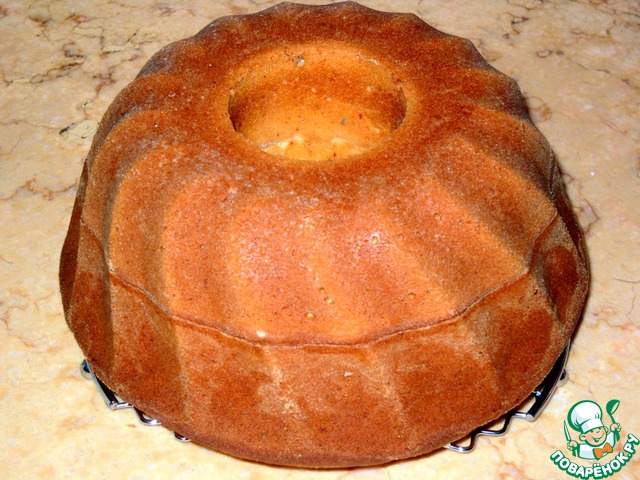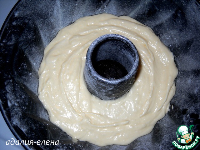 Вылить оставшееся тесто в форму. Поставить в духовку и выпекать 40-45 минут. Выключить духовку и оставить кекс еще на 5 минут.