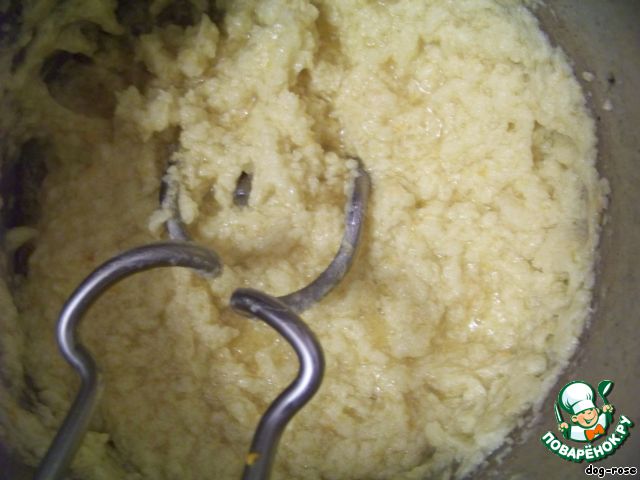 Добавляем стакан муки, взбиваем, получается легкое, нежное тесто.