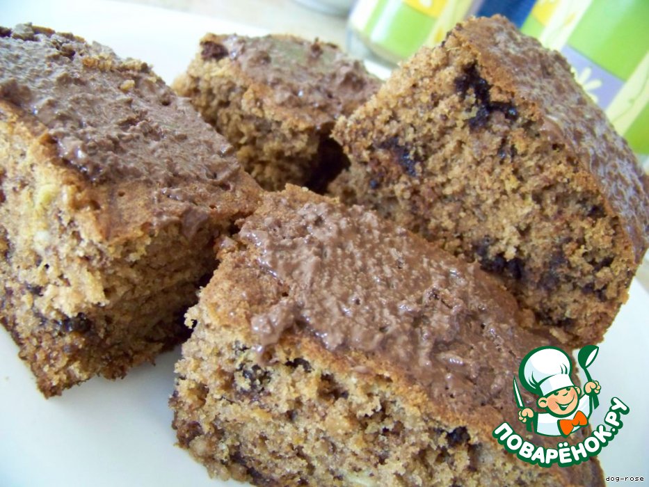 Печем в духовке на небольшом огне столько времени, чтобы спичка выходила из кекса практически сухой (у меня где-то около часа, но все зависит от духовки). Остужаем кекс, вынимаем. Вот такой он получается. Сверху я еще немного полила растопленным шоколадом.