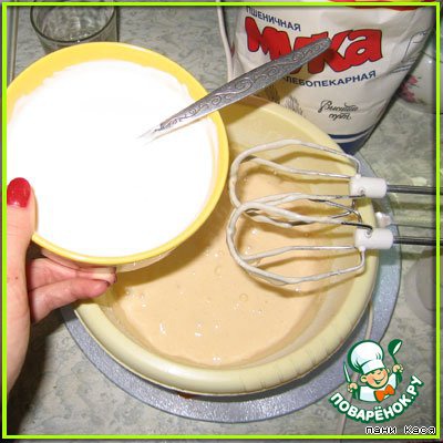 1 яйцо взбить с 1/3 стакана сахара (второе тоже взбить отдельно с 1/3 стакана сахара) до белой пены