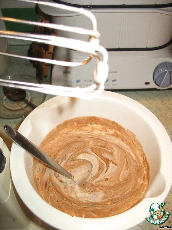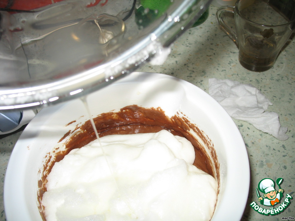 Взбить до крепкой пены белки и осторожно вбить в микс.