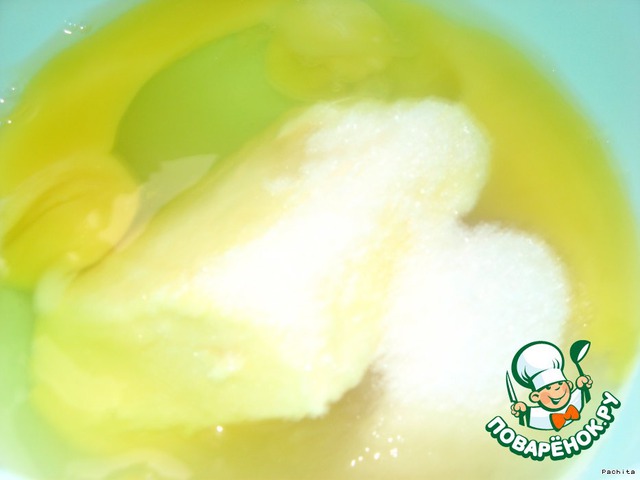 Сливочное масло взбить с сахаром, солью, яйцами.
