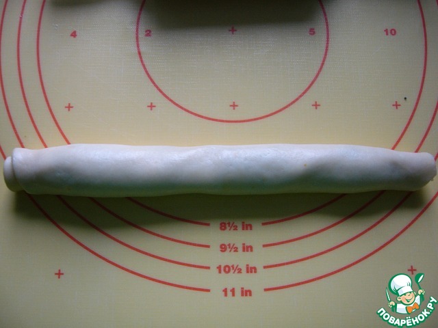 Теперь раскатать один кусочек теста в прямоугольник (примерно 15Х20 см)