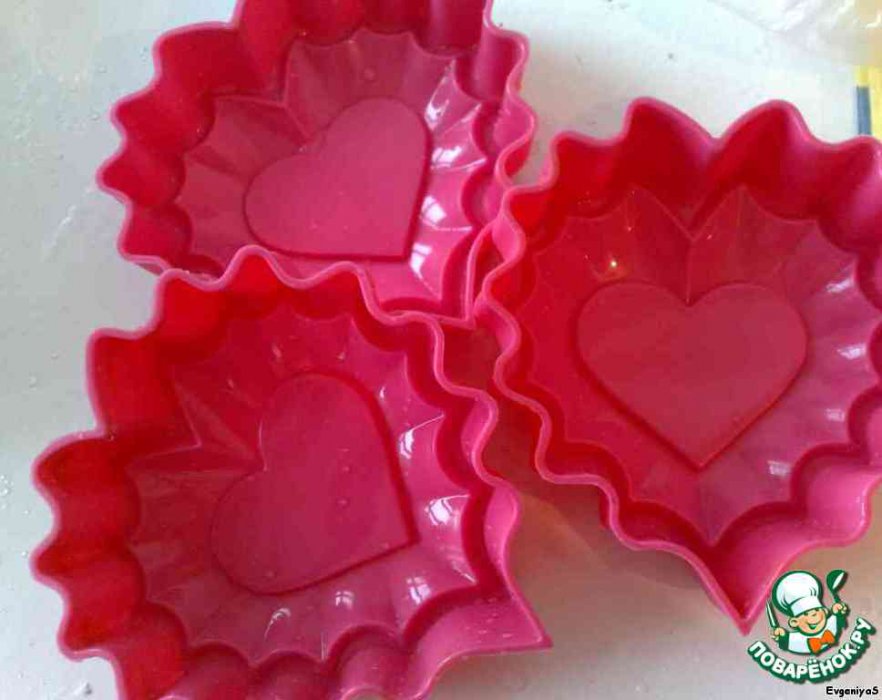 Вначале наполовину заполнила формочки, потом клала кусочки апельсина и шоколада.