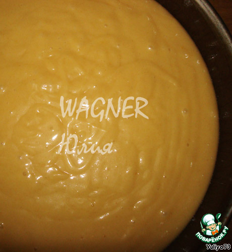 Смешиваем все ингредиенты, тесто получается жидковатое, выливаем в разъемную форму диаметром 24 см.
