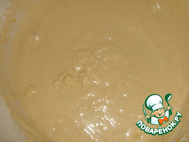 Взбить яйца с сахаром, постепенно ввести 1,5 стакана муки и опять хорошо взбить миксером. Добавить растительное масло, взбить.
