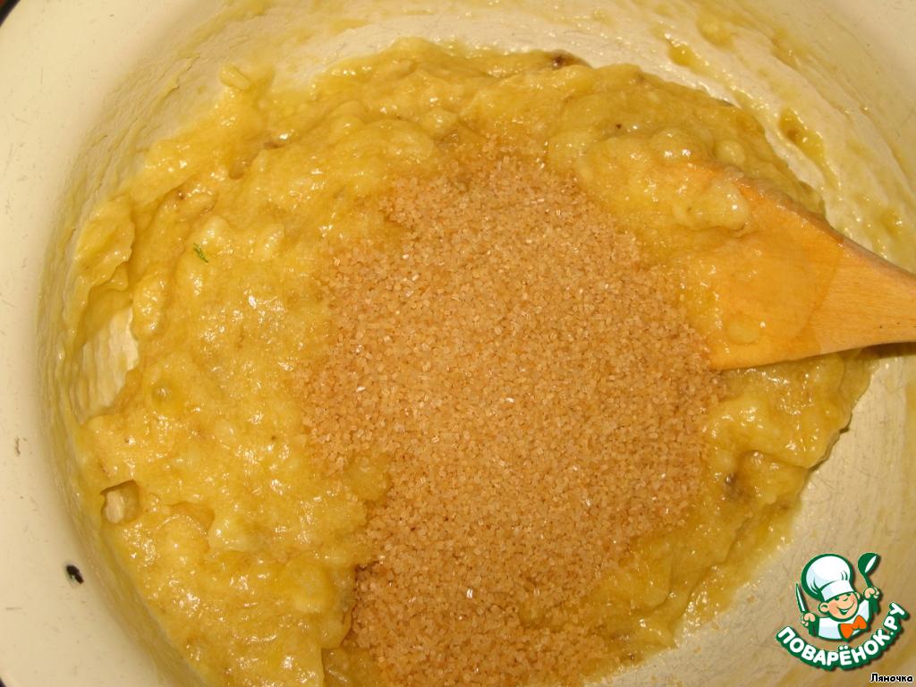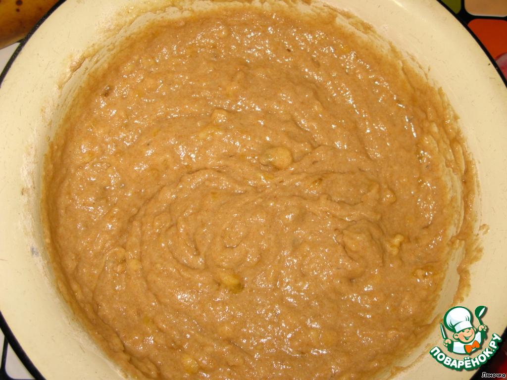 И размешать тесто. Полной однородности можно не добиваться, ничего страшного, если в готовом тесто будут проглядывать маленькие кусочки бананов.