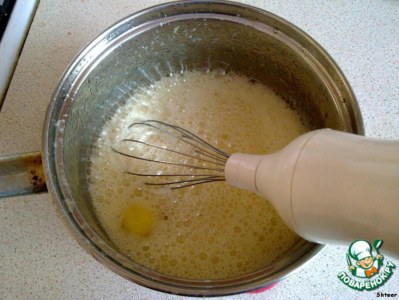 Вбить туда яйца по одному, каждый раз хорошо взбивая.