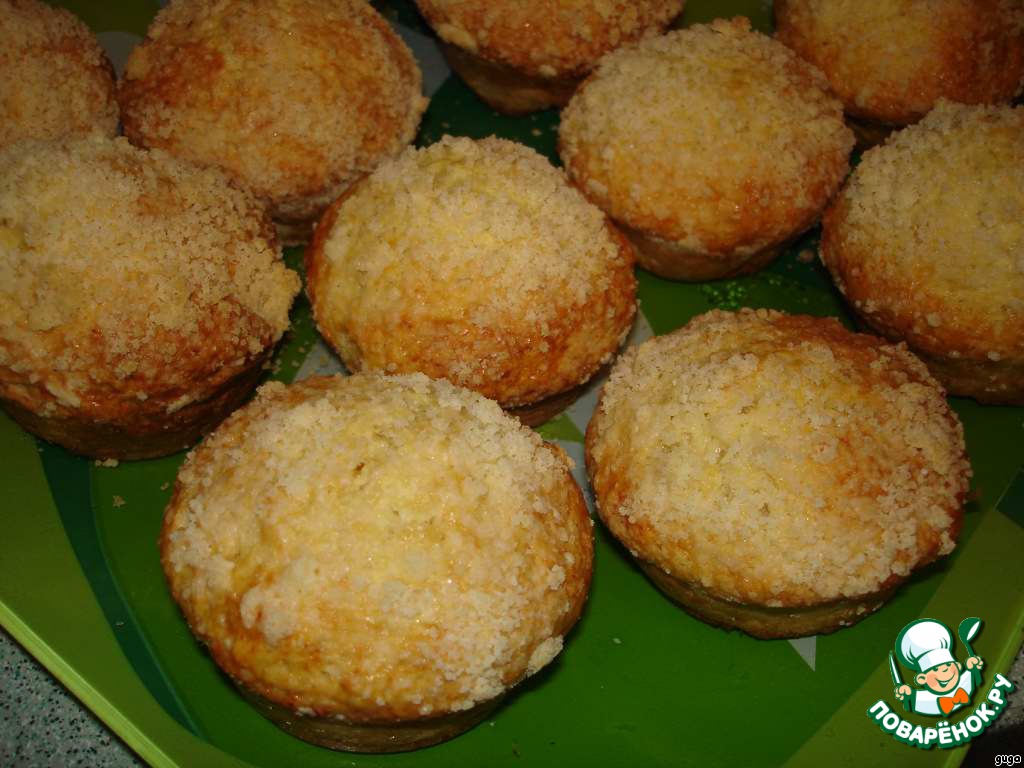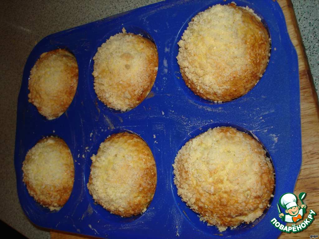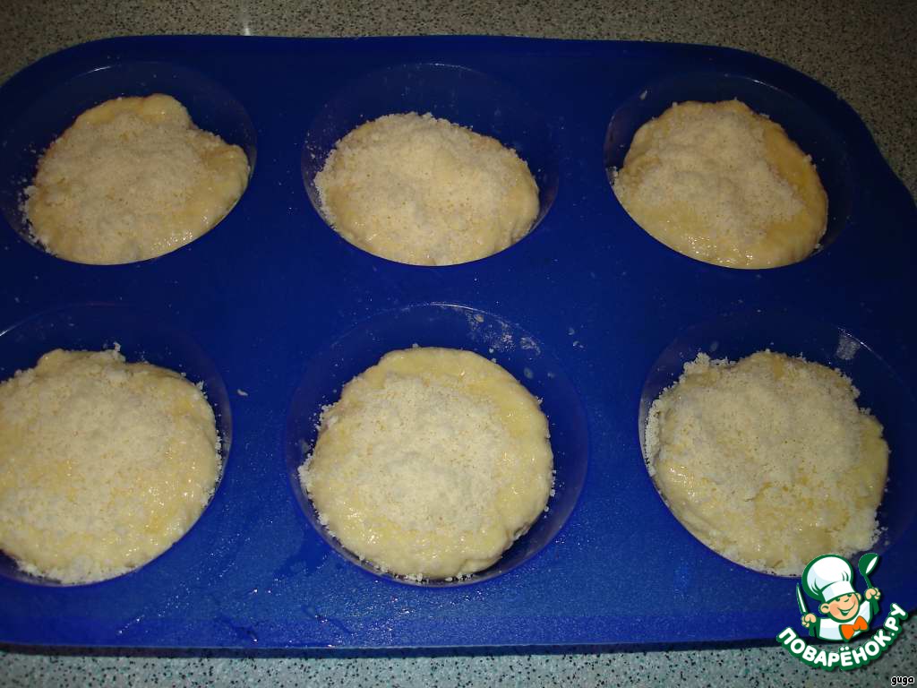Формочку для маффинов наполняем на 2/3 тестом и присыпаем присыпкой.