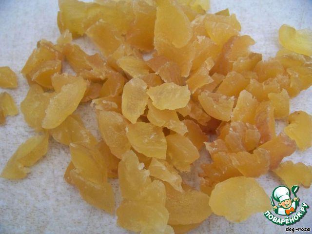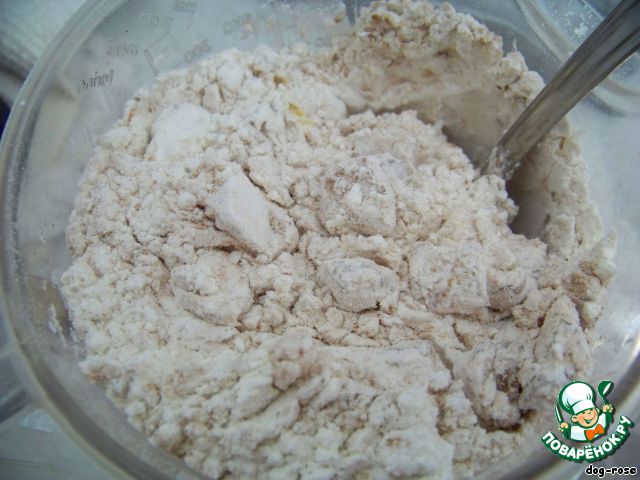 Смешиваем картофельный крахмал и муку, добавляем специи (знающие люди говорят, что еще хорошо положить 1 ч.л. имбиря), соду, сухофрукты, лимонную цедру, перемешиваем.