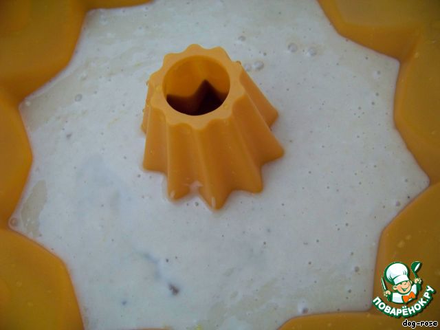 Смесь по консистенции получается, как негустая сметана. Выливаем ее в форму (если обычная, то смазываем маслом, если силиконовая, то чуть сбрызгиваем холодной водой). Совет от dog-rose: никогда не покупайте китайские силиконовые формы!