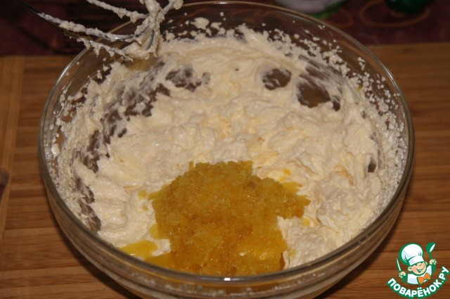 Взбить размягченное сливочное масло с оставшимся сахаром до пышности. Продолжая взбивать, по одному добавить яйца,