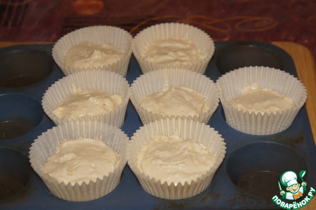 Формочки для маффинов смазать растительным или сливочным маслом, наполнить их тестом почти до краев. Выпекать до золотистого цвета, 25-30 минут.