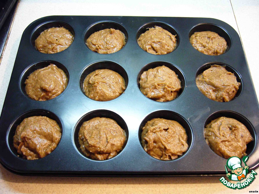 Я заполнила им формочки для выпекания кексов. Моего теста хватило ровно на 12 кексиков.
