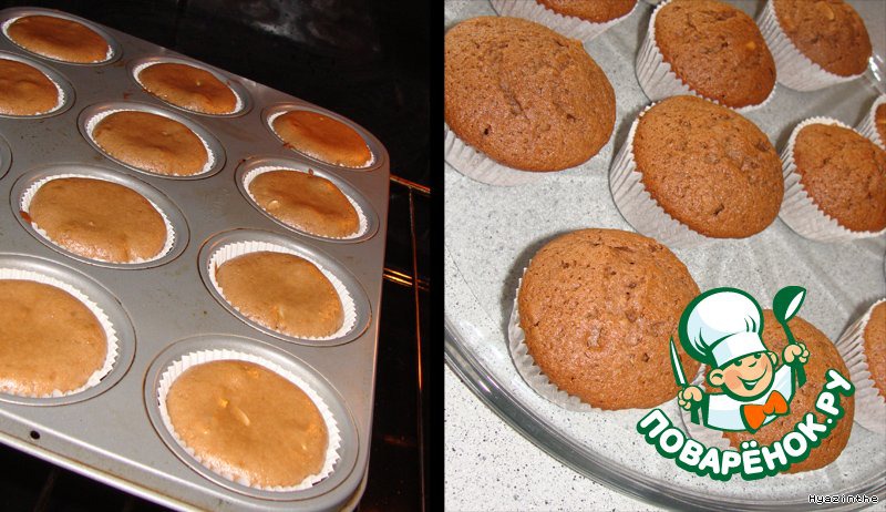 Разливаем тесто в формы, выпекаем в предварительно нагретой до 180*духовке 20-25 минут. Остужаем.