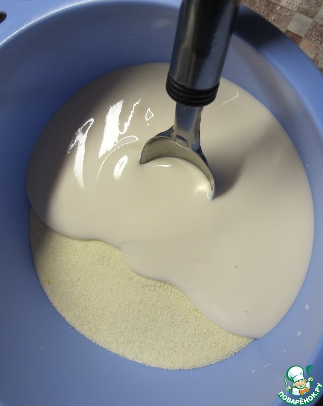 Смешать манку и йогурт и оставить набухать.
