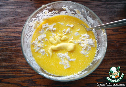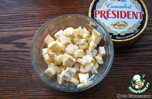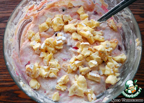 Добавить сыр, перемешать аккуратно, чтобы ягоды не лопнули.
