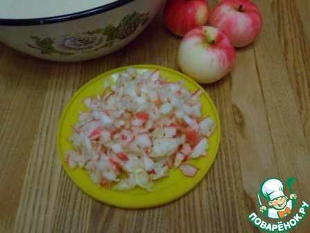 У яблок удалить сердцевину и измельчить в блендере на не большие кусочки. Можно по желанию натереть яблоки на крупной терке.