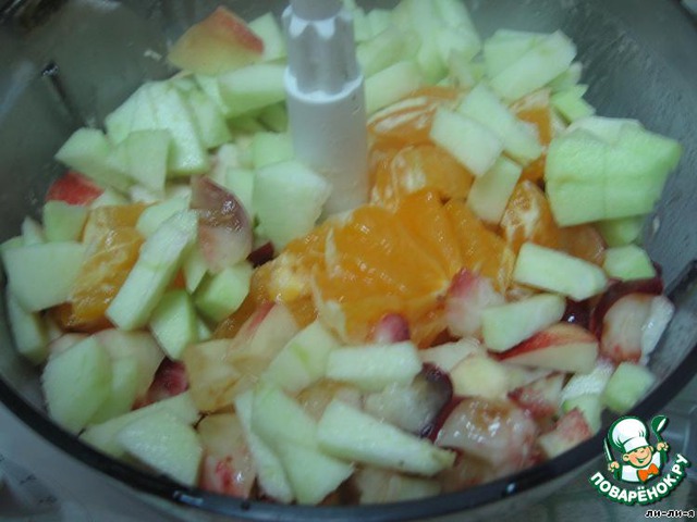 Подойдут любые фрукты. Их надо мелко нарезать.